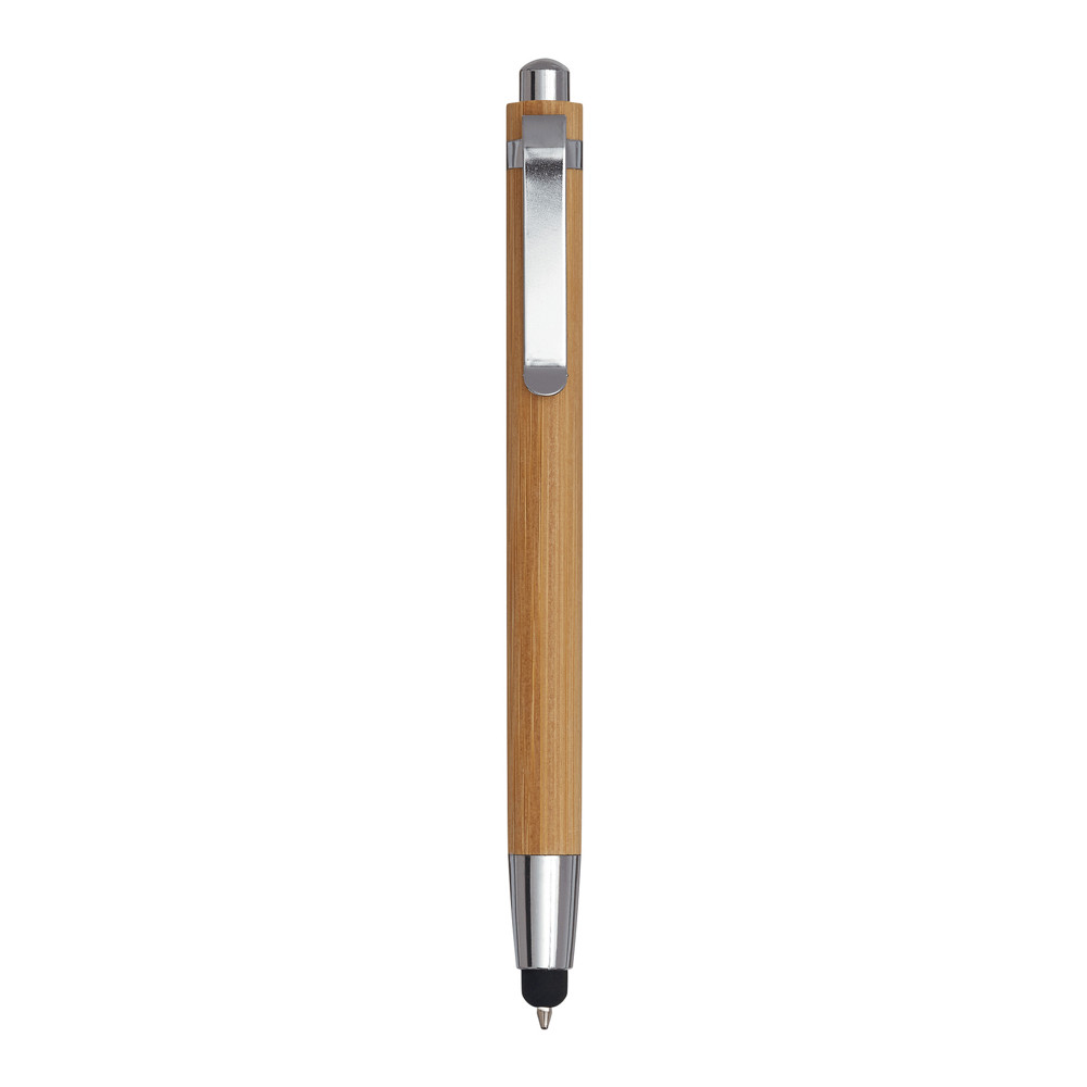 Kugelschreiber TOUCH BAMBOO: mit elegantem Bambus-Schaft, Druckmechanismus, Großraummine, mit Touchscreen-Spitze, blauschreibend