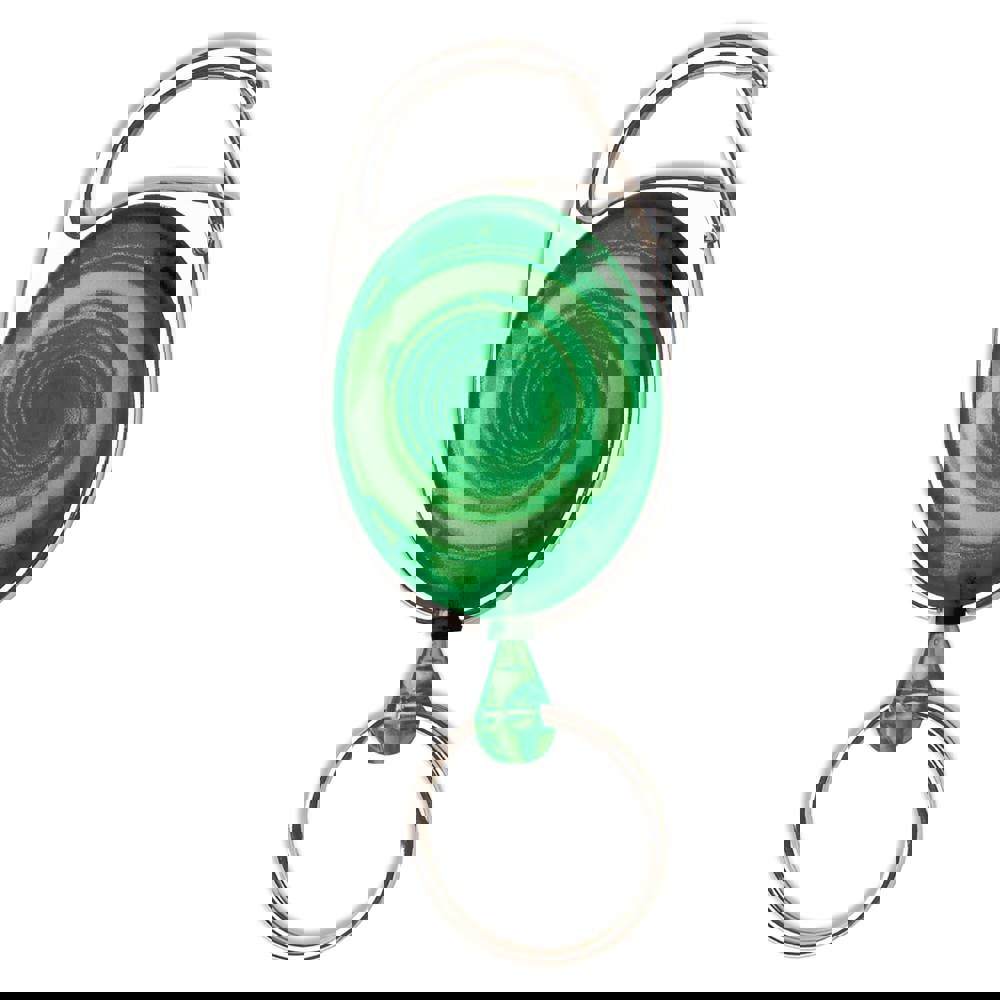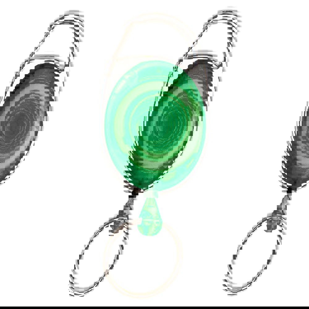 Gefrosteter Namensschildhalter mit Ausziehband (60cm) und Karabinerhaken. mehr