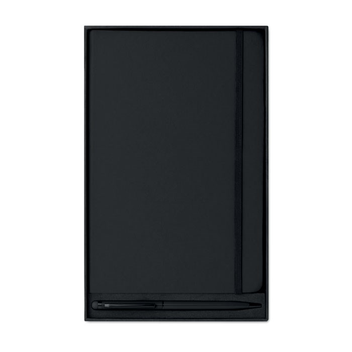 DIN A5 Notizbuch mit Hard Cover. 72 Blatt (144 Seiten) liniertes Papier. Farblich abgestimmter Kugelschreiber mit Stylus. Blaue Tinte. Elastisches Verschlussband, Lesebändchen und Stiftschlaufe. FSC MIX CREDIT | P7.1 | FSC-C213206
