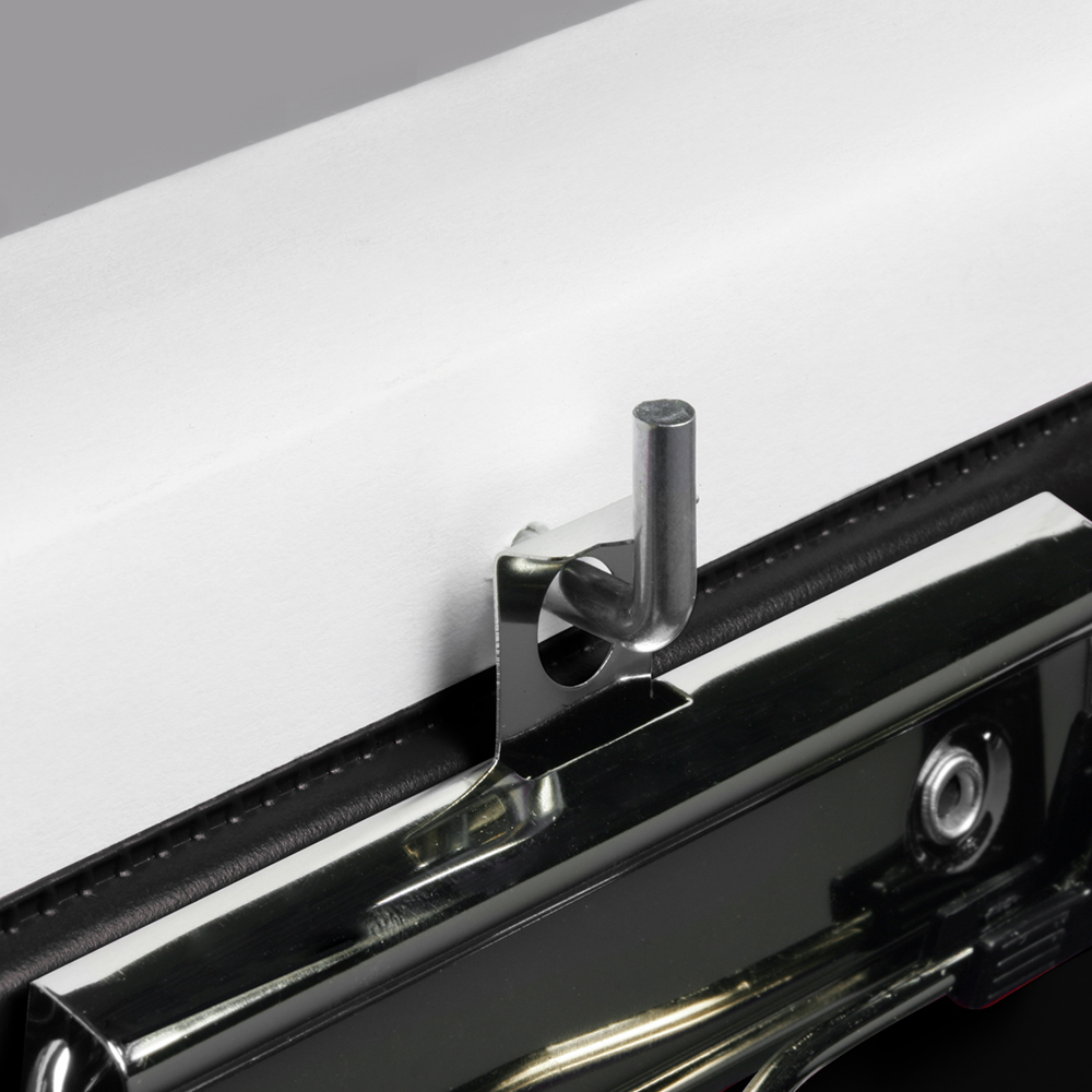 mit Metallklemme und ausziehbarer Aufhängung. Druck 1-farbig: weiß, schwarz, silber oder gold