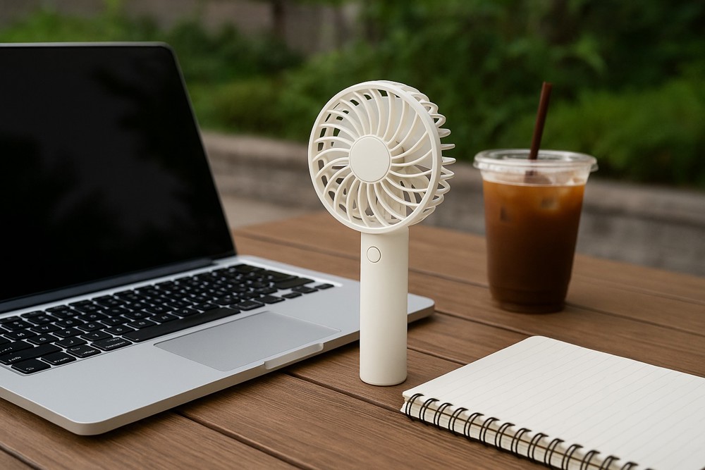 - Tragbarer Ventilator, der individuelle Erfrischung bietet.