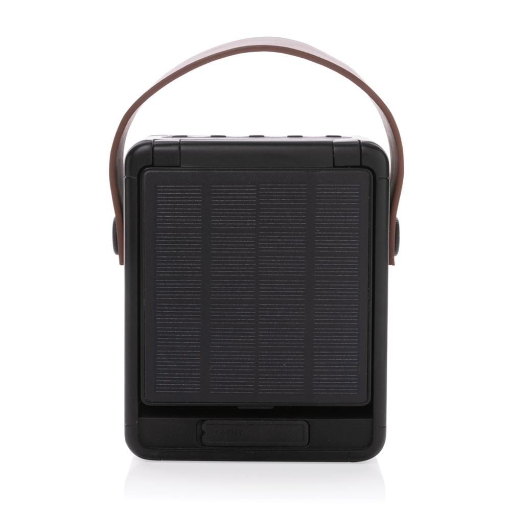 Leistungsstarker kabelloser 12W-Lautsprecher aus RCS-zertifiziert recyceltem ABS mit integriertem großen Solarpanel. Recycelter Inhalt insgesamt: 16%, bezogen auf das Gesamtgewicht des Artikels. Die RCS-Zertifizierung gewährleistet eine vollständig zertifizierte Lieferkette für die recycelten Materialien. Der Lautsprecher verwendet hochwertige monokristalline Solarmodule mit einer Umwandlungsrate von 19%. Die Ladegeschwindigkeit hängt von den Umgebungsbedingungen ab. Mit integrierter LED-Lampe zur Nutzung des Lautsprechers auch bei Sonnenuntergang. Der Lautsprecher ist mit einem 1500mAh-Akku für bis zu 8 Stunden Spielzeit sowie BT5.3 für eine klare und stabile Verbindung auf bis zu 10m ausgestattet. Mit Mikrofon und Anruf-Annahme-Funktion. Aufladegeschwindigkeit Solar: 5V/300mA. Verpackt in FSC-Mix FSC®-Box. Inklusive RCS-zertifiziert recyceltem TPE-Ladekabel. Artikel und Zubehör 100% PVC-frei