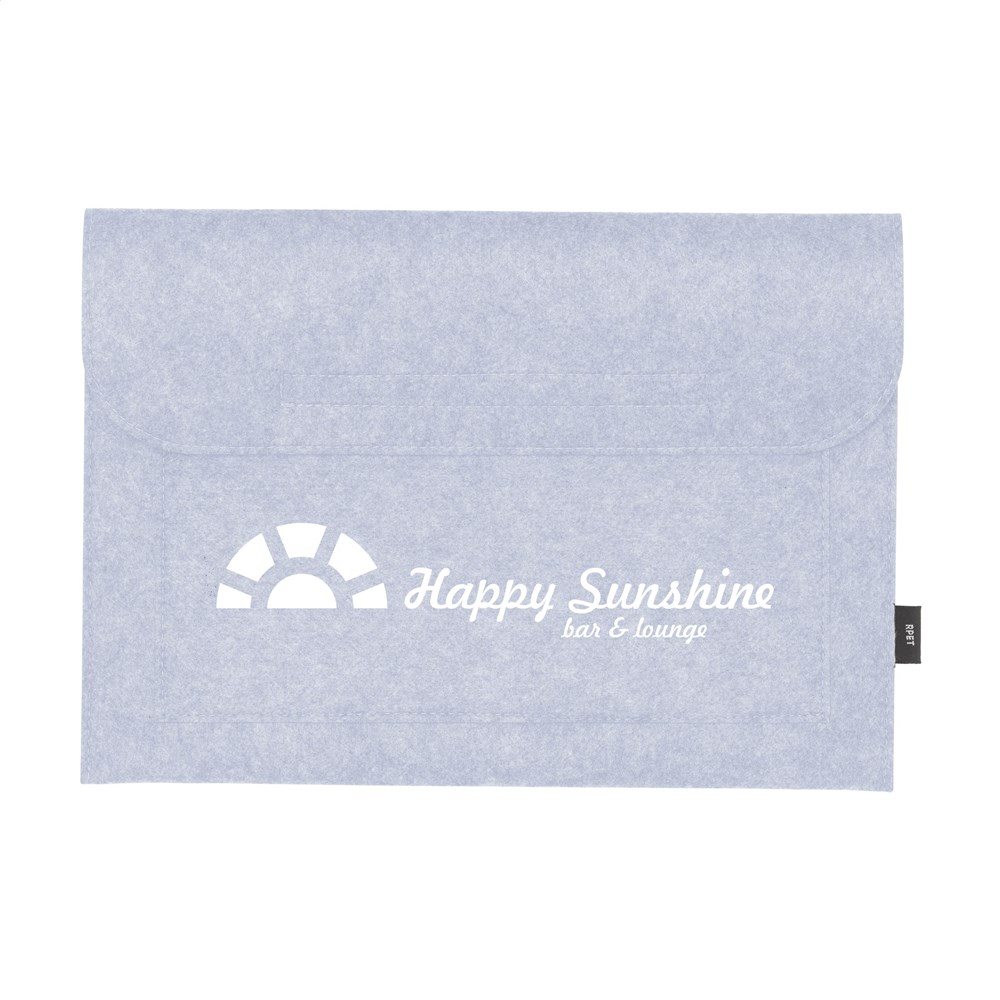 Schicke Laptoptasche aus RPET hochwertigem Filz. Mit Klettverschluss. Geeignet für Tablets, Laptops und MacBooks bis 15 Zoll. GRS-zertifiziert. Recyceltes Material insgesamt: 95%.