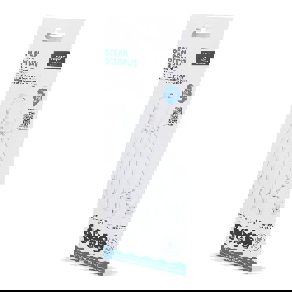 Das Eco Octopus Ladekabel ist aus ozeangebundenem Kunststoff hergestellt. Mit zwei (USB-A & USB-C) Eingängen und drei verschiedenen Anschlüssen können Sie Ihre Geräte umweltfreundlich aufladen. Am Schreibtisch, im Auto, in der Tasche oder im Urlaub; dieses Multiladekabel ist immer praktisch!