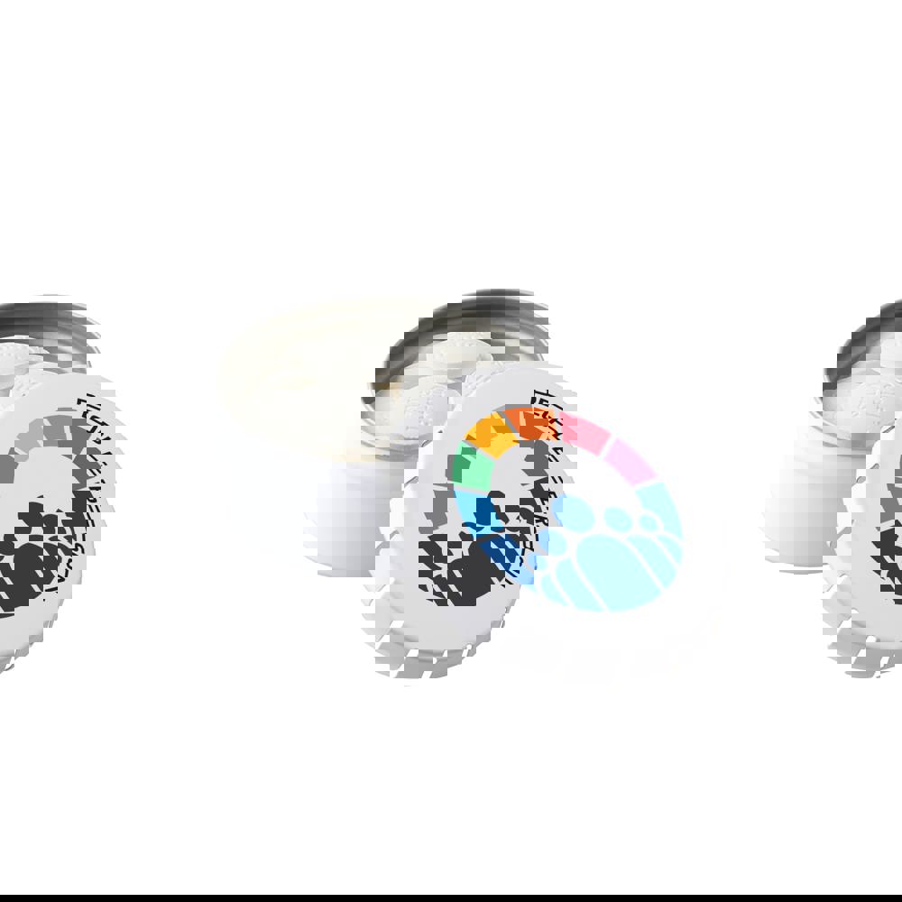 Weiße hohe Mini Klick-Klack Dose, gefüllt mit ca. 23 Gramm Compli'mints. Vollfarbig bedruckt, mit... mehr