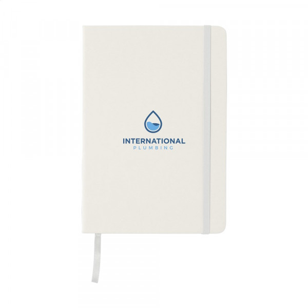 Praktisches Notizbuch im A5-Format. Mit festem PU-Überzug, ca. 80 Seiten cremefarbenem, liniertem FSC Mix zertifiziertes Papier (70 g/m²), elastischem Verschluss und Leseband.