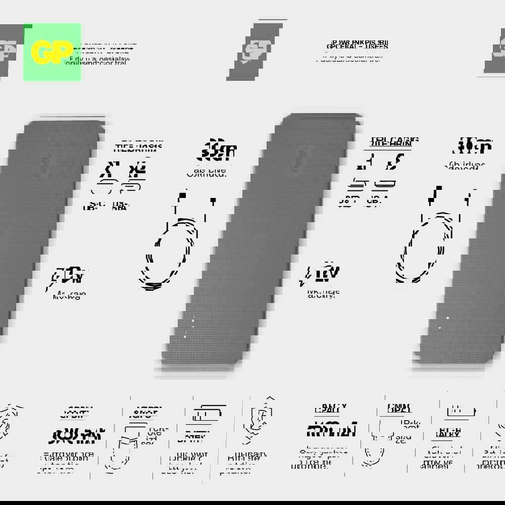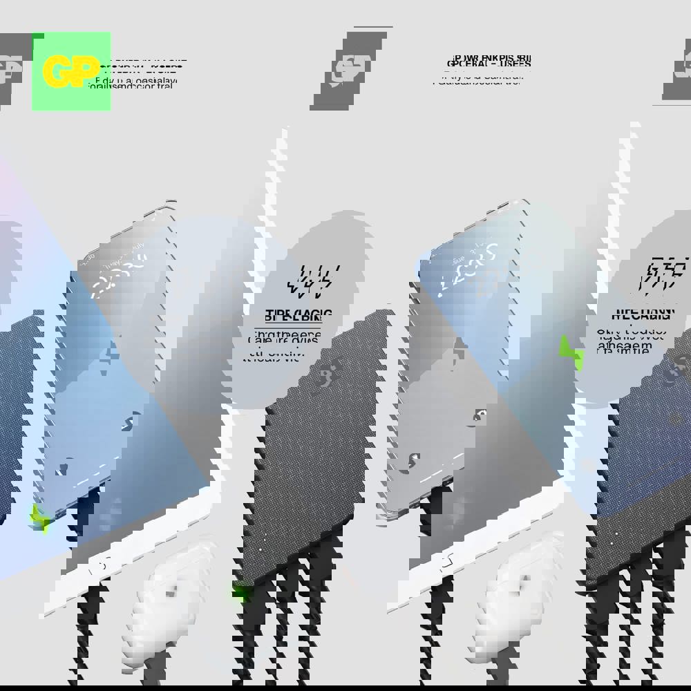 Die GP PowerBank kombiniert eine zuverlässige Stromversorgung mit einem eleganten Design. Mit einer Kapazität von 5000 mAh ermöglicht sie das gleichzeitige Laden von drei Geräten über 2x USB-A und 1x USB-C. Die Powerbank verfügt über einen 8-fachen Schutz für eine sichere Nutzung und garantierte Langlebigkeit. Ideal für den professionellen und alltäglichen Gebrauch.