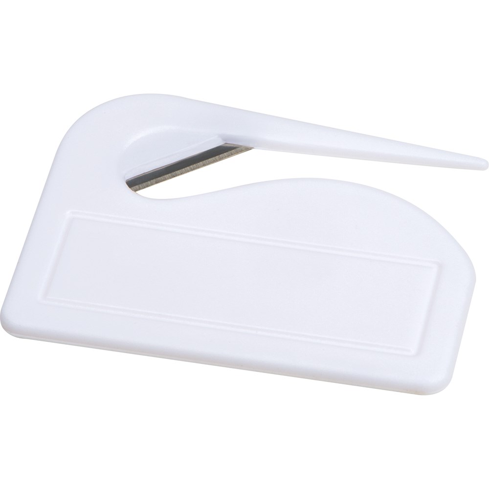 Einfaches Design: Der weiße Kunststoff-Brieföffner ist leicht und einfach zu handhaben.
