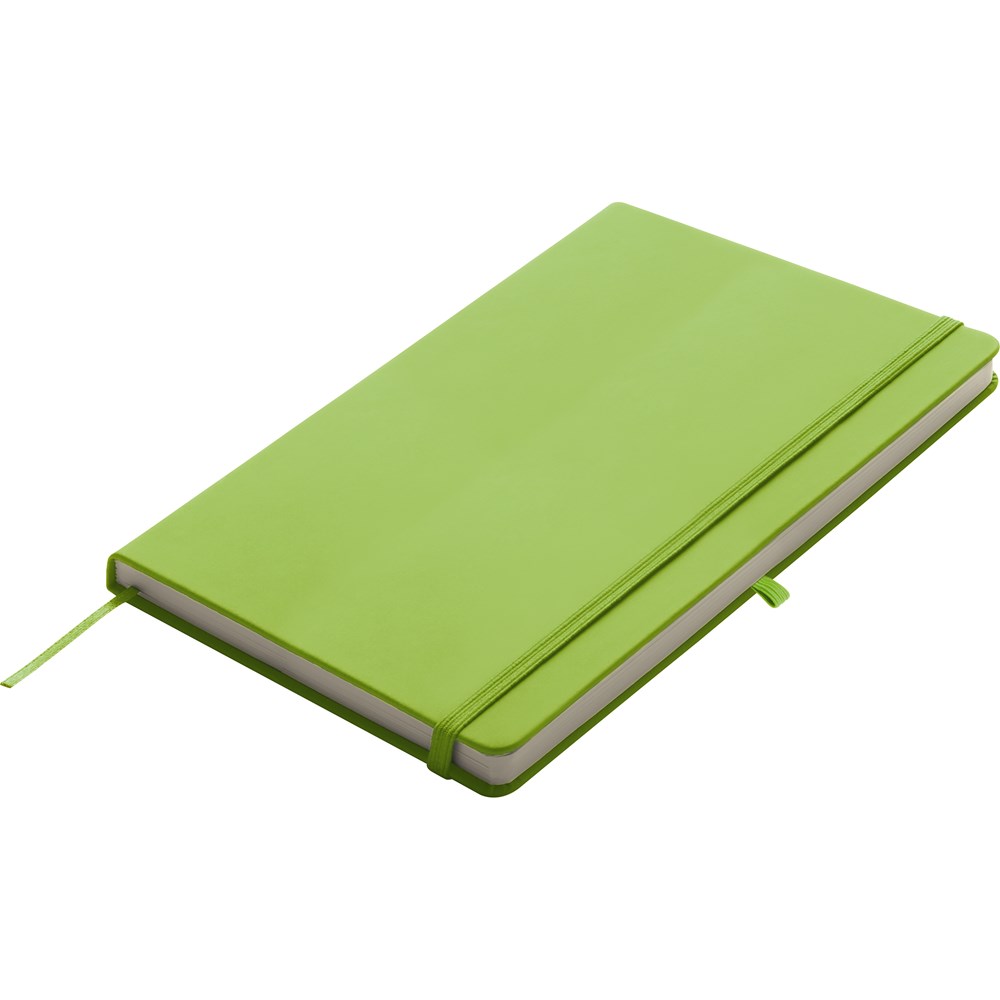 TOP PRICE! Notizbuch A5 im samtweichen PU-Einband, Kugelschreiberschlaufe, Lesezeichen, Gummiverschlussband und 160 Blankoseiten. Ihre Werbung drucken wir per Tampondruck auf das Cover.