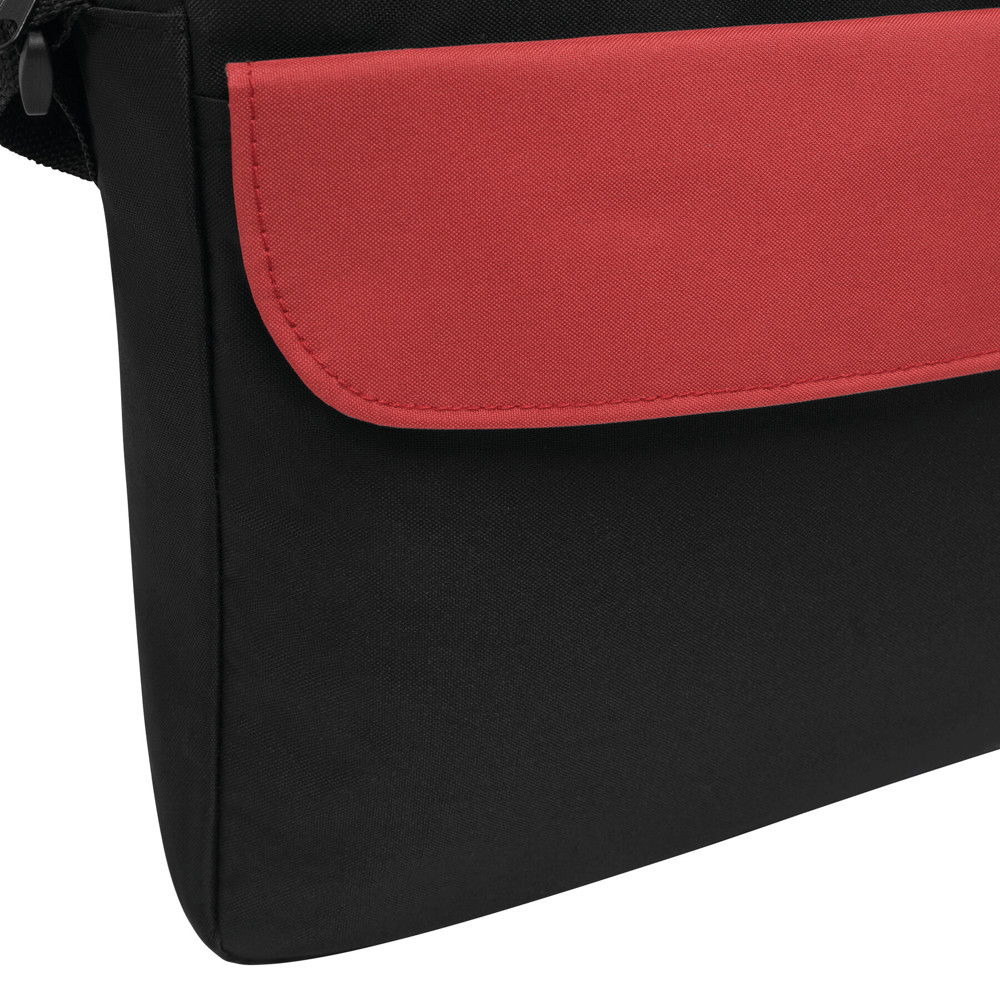 Dokumententasche BRISTOL: Klettverschluss-Vorfach mit farblich abgesetztem Umschlag, geräumiges Reißverschluss-Hauptfach, 2 verstärkte und farblich abgesetzte Tragegriffe, verstellbarer Schultergurt