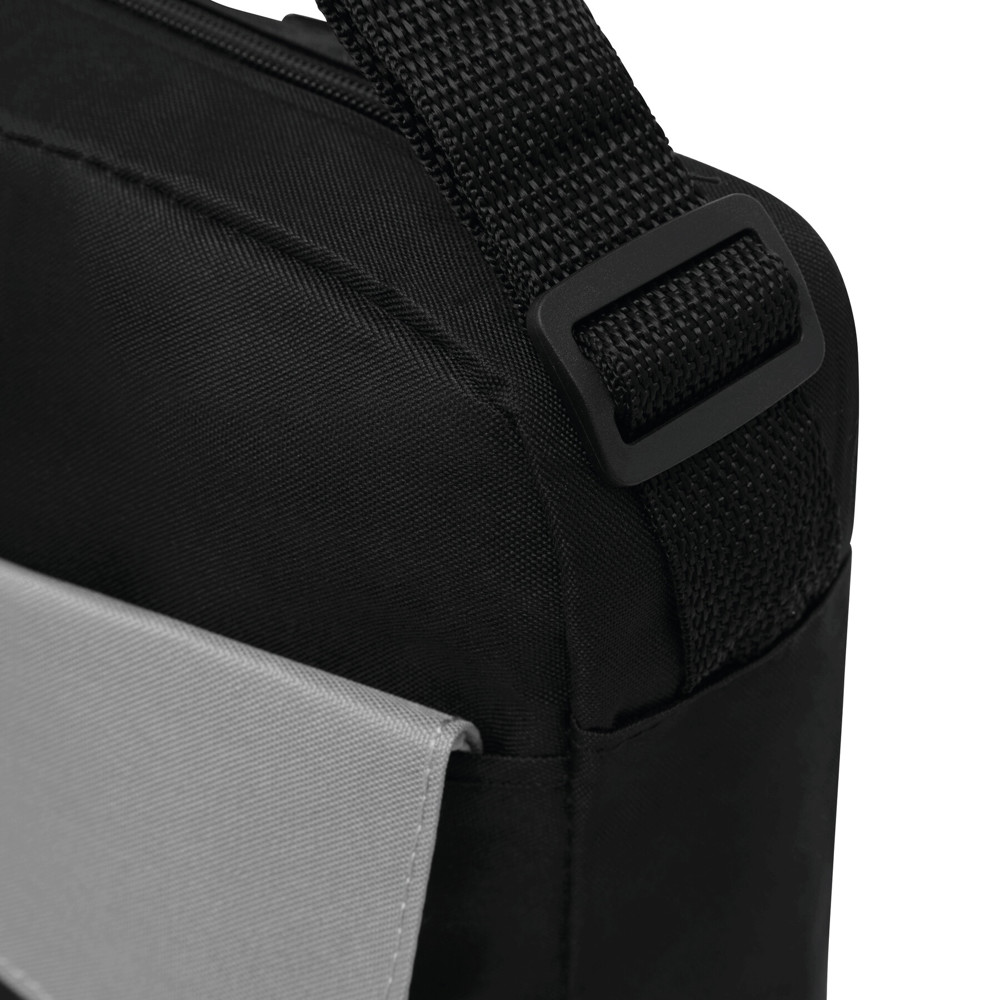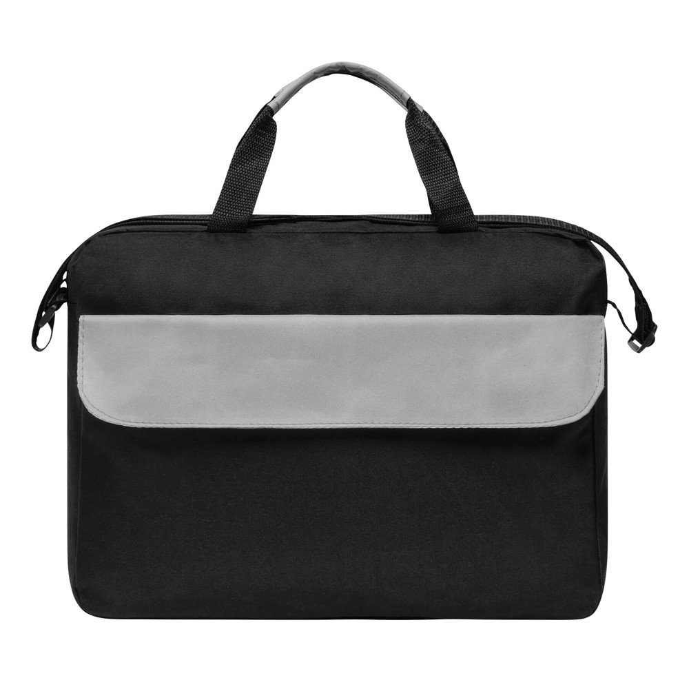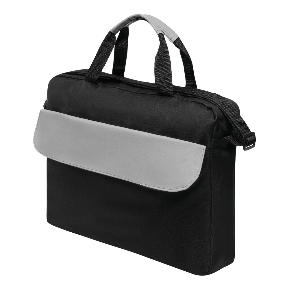 Dokumententasche BRISTOL: Klettverschluss-Vorfach mit farblich abgesetztem Umschlag, geräumiges Reißverschluss-Hauptfach, 2 verstärkte und farblich abgesetzte Tragegriffe, verstellbarer Schultergurt