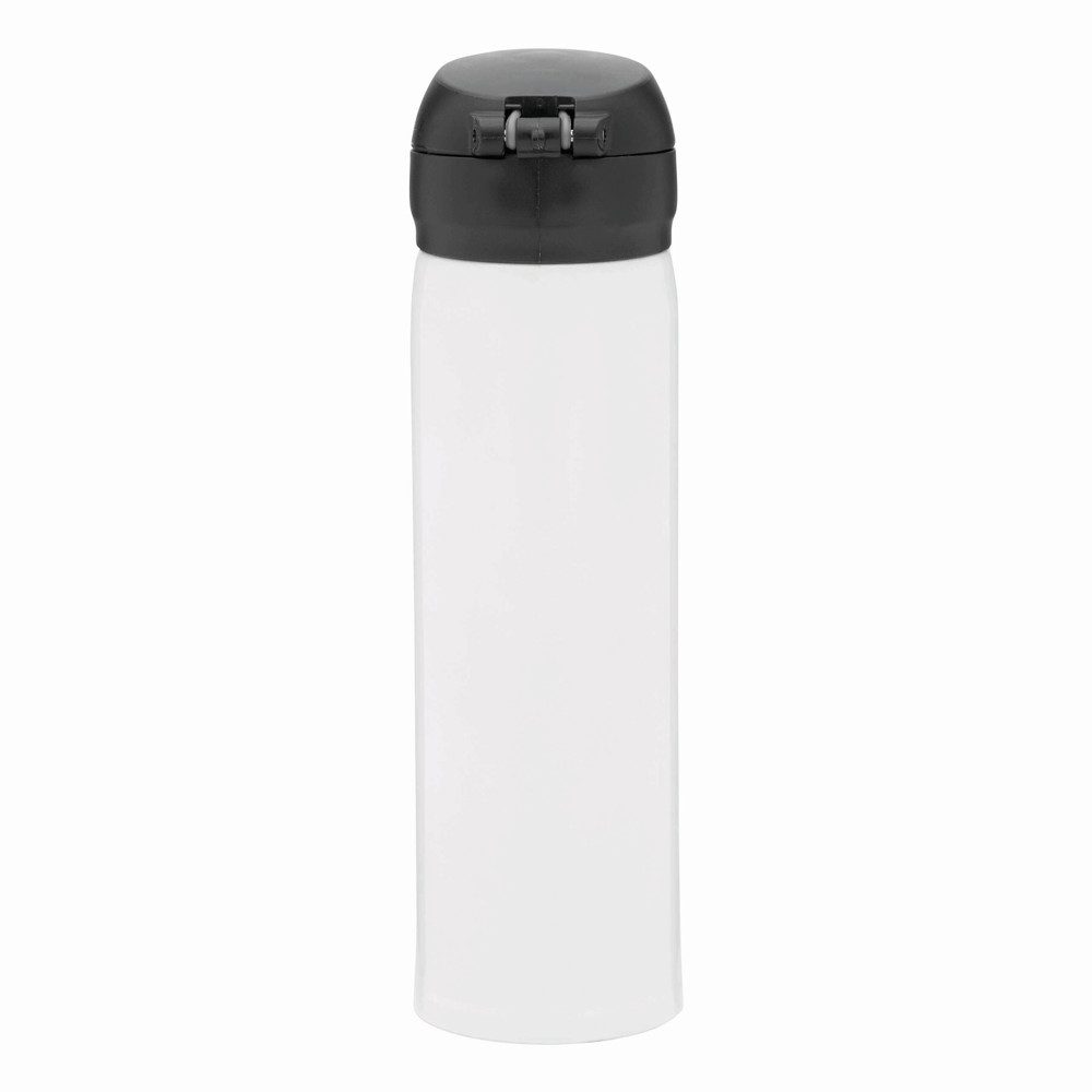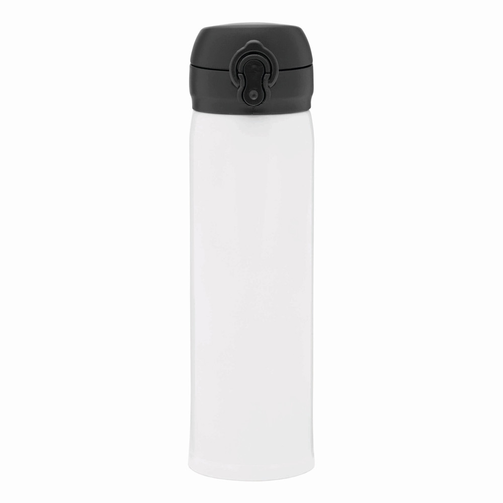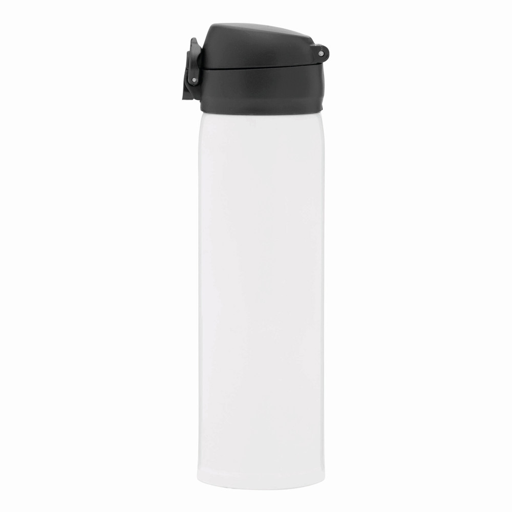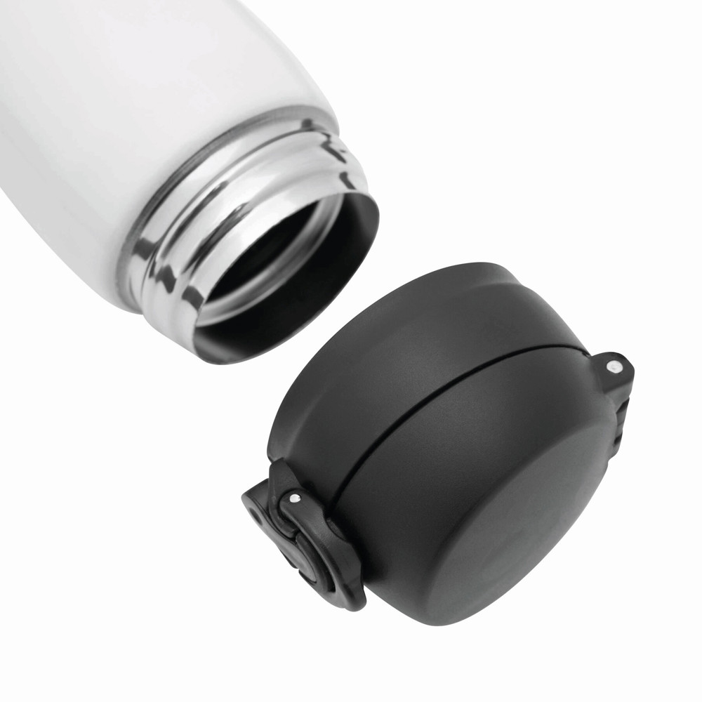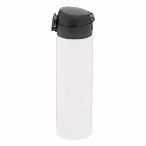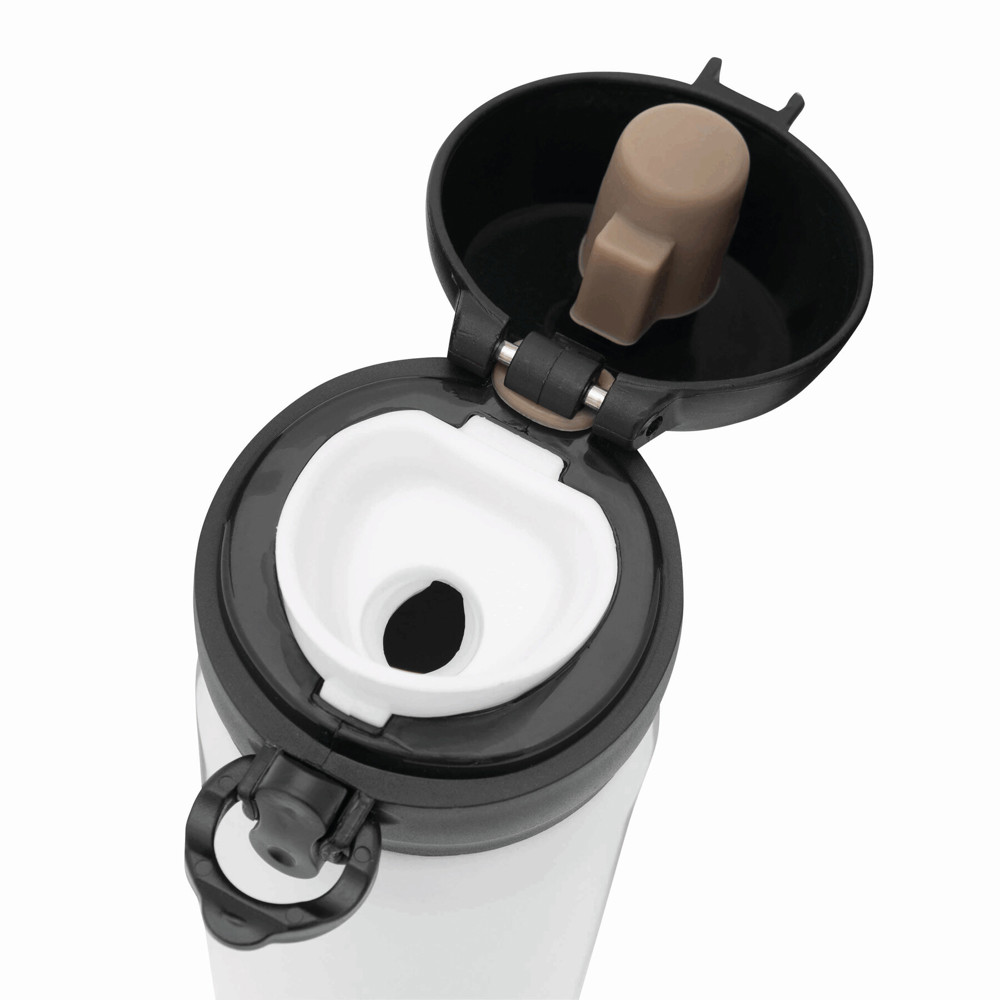Vakuum-Trinkflasche OOLONG, doppelwandig,: innen und außen aus Edelstahl, Kunststoff-Deckel mit Klappverschluss, Sicherheitsverriegelung, integrierter Trinköffnung, Füllmenge ca. 400 ml, halt ca. 6 Stunden warm und bis zu 12 Stunden kalt, in Box