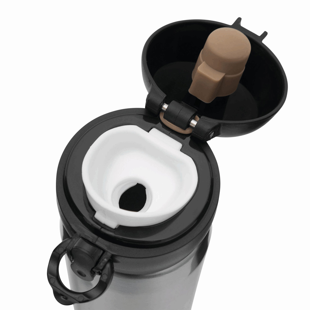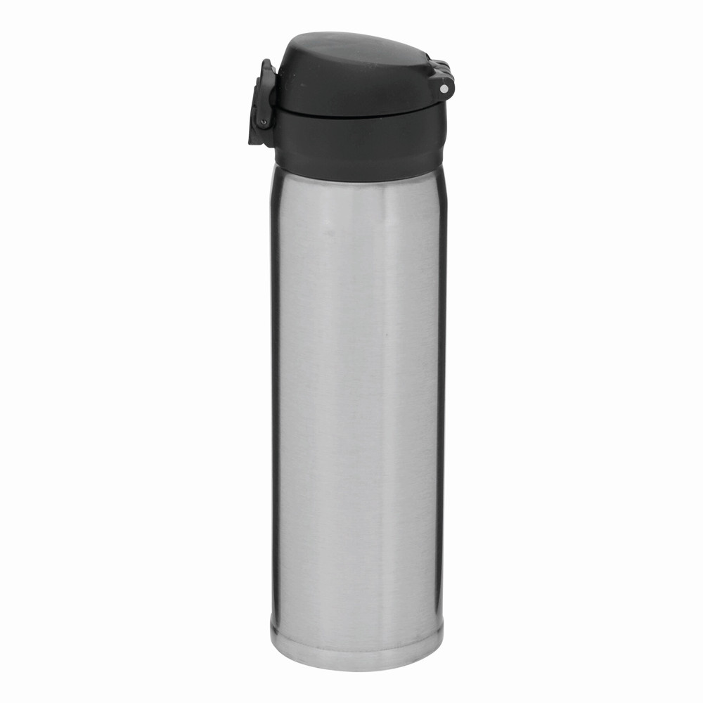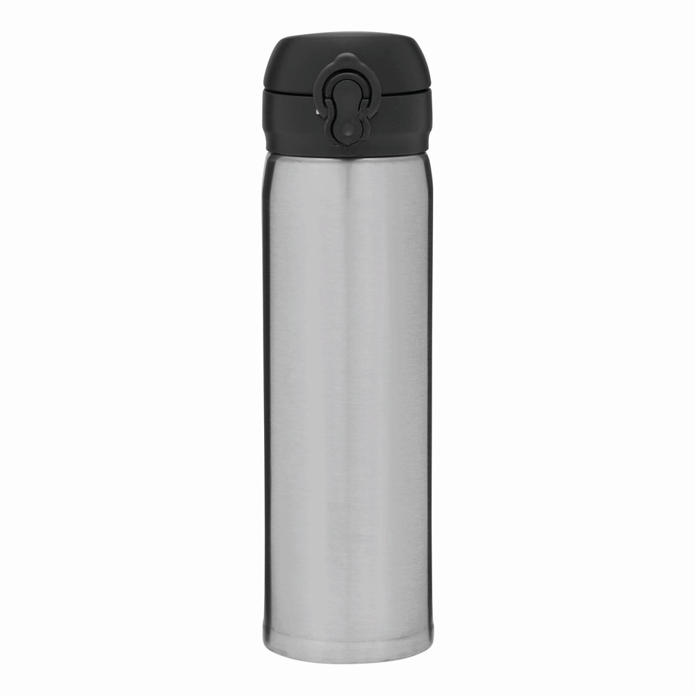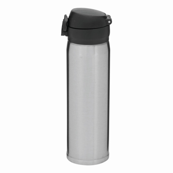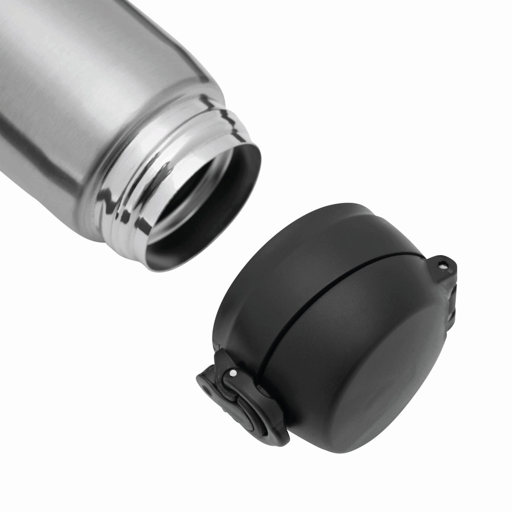 Vakuum-Trinkflasche OOLONG, doppelwandig,: innen und außen aus Edelstahl, Kunststoff-Deckel mit Klappverschluss, Sicherheitsverriegelung, integrierter Trinköffnung, Füllmenge ca. 400 ml, halt ca. 6 Stunden warm und bis zu 12 Stunden kalt, in Box