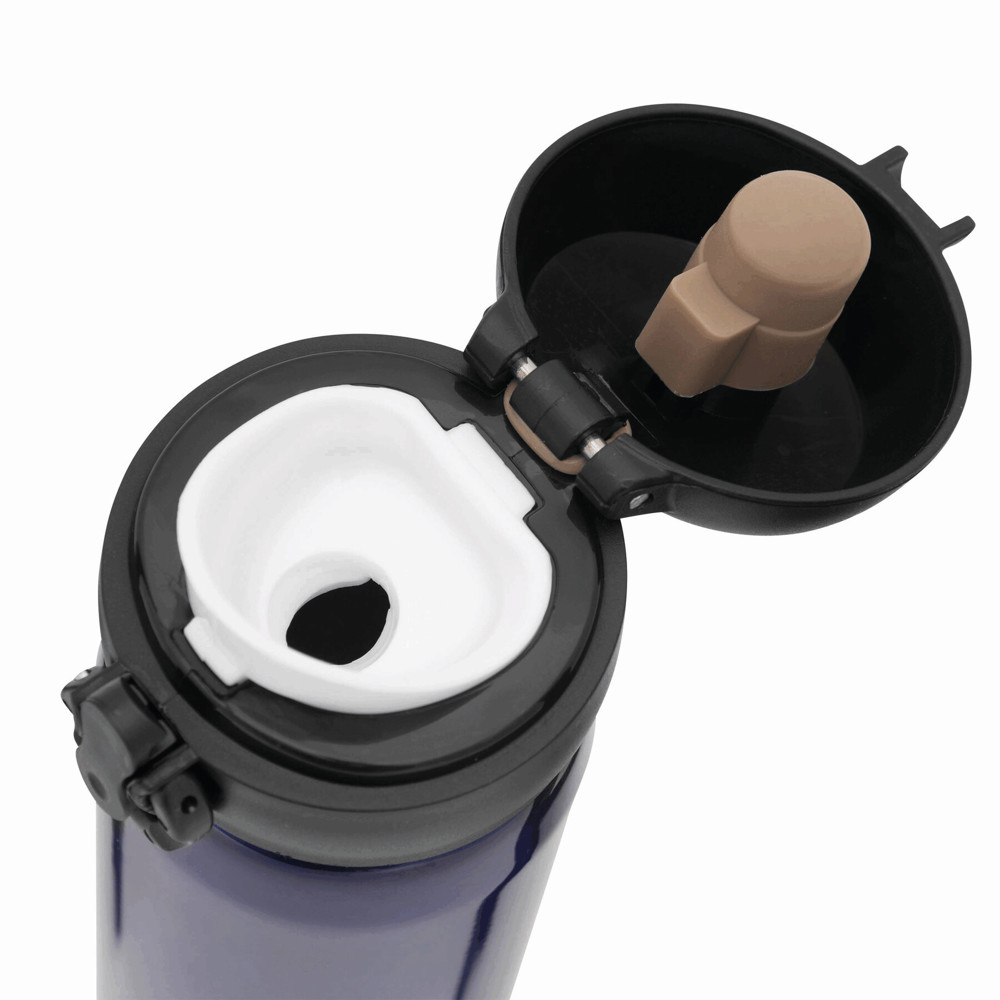 Vakuum-Trinkflasche OOLONG, doppelwandig,: innen und außen aus Edelstahl, Kunststoff-Deckel mit Klappverschluss, Sicherheitsverriegelung, integrierter Trinköffnung, Füllmenge ca. 400 ml, halt ca. 6 Stunden warm und bis zu 12 Stunden kalt, in Box