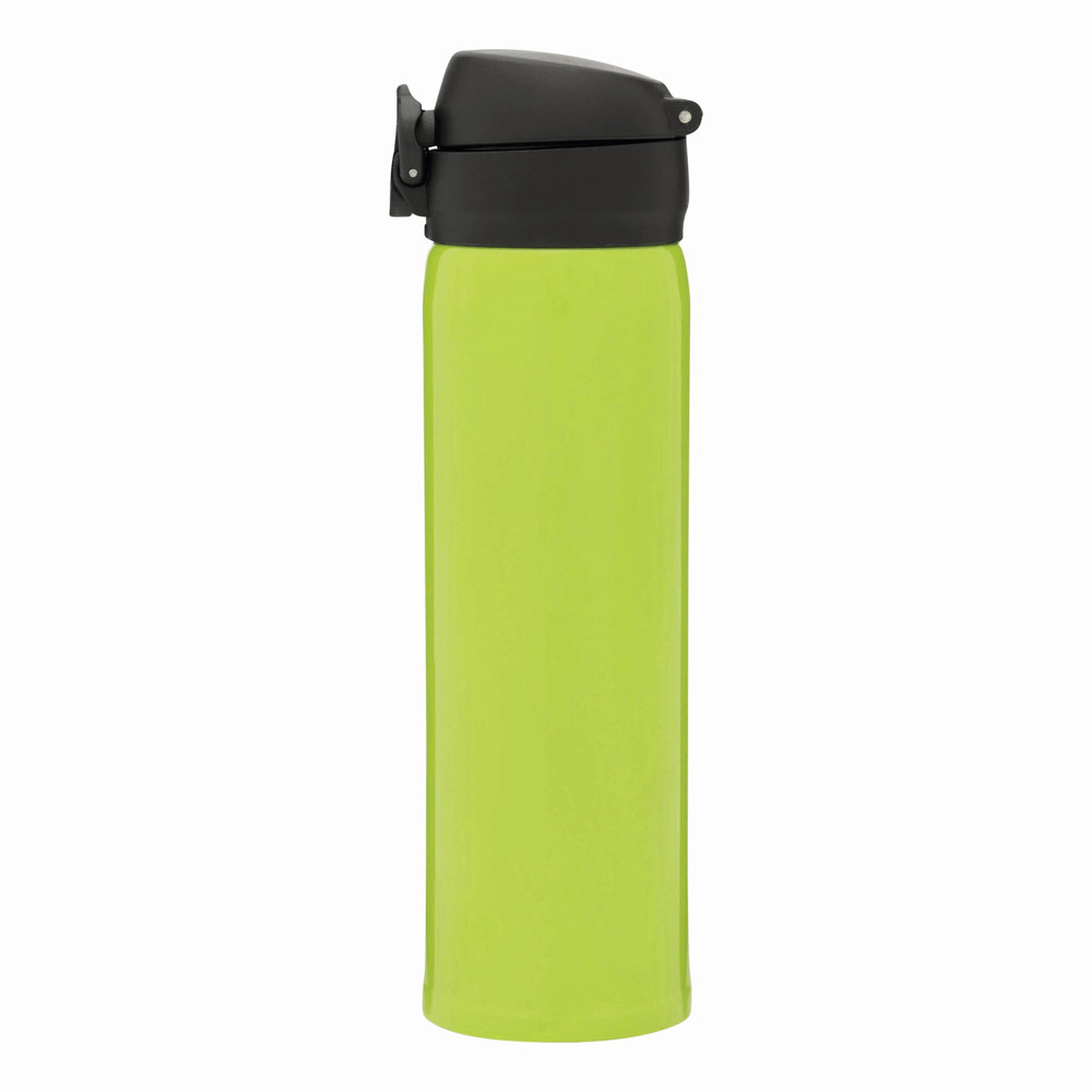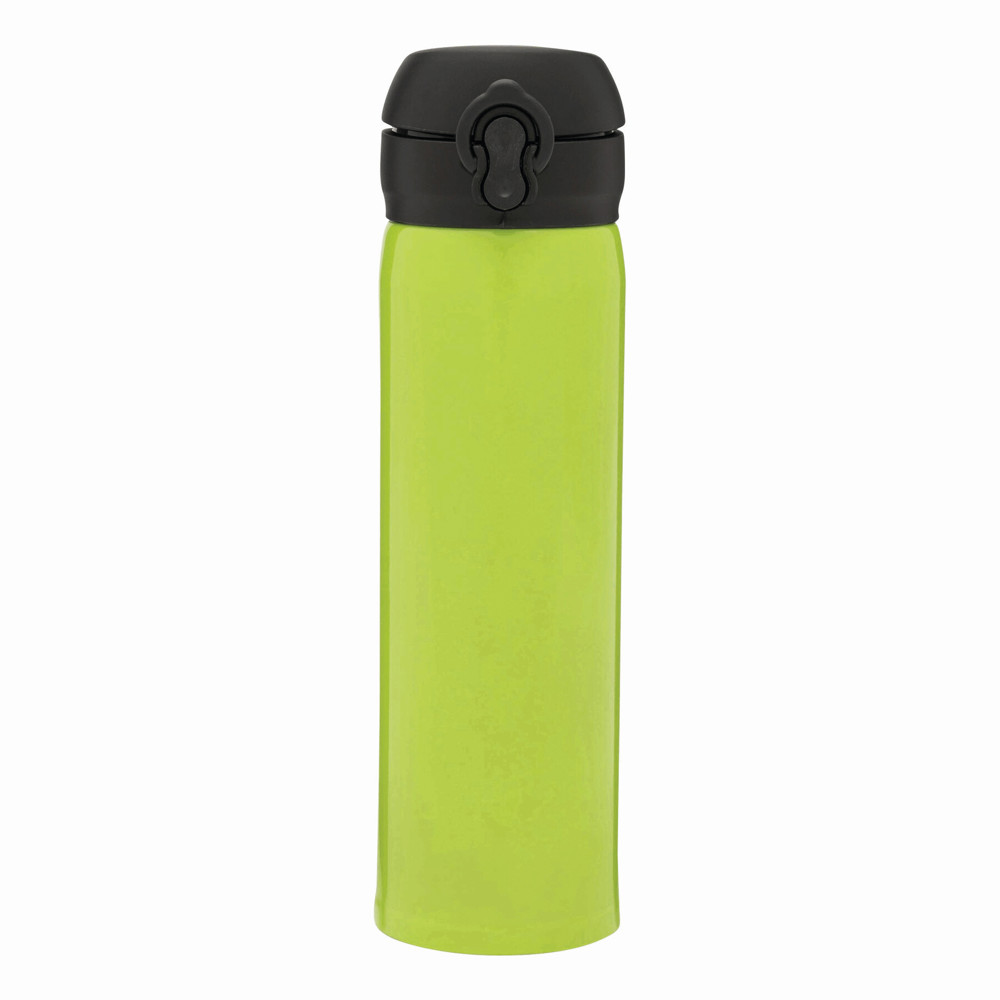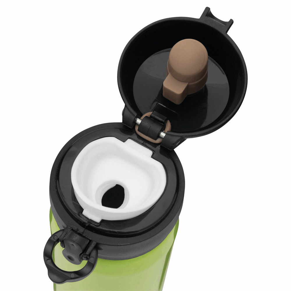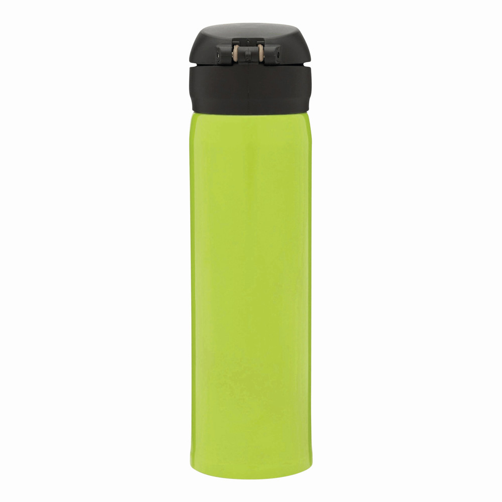 Vakuum-Trinkflasche OOLONG, doppelwandig,: innen und außen aus Edelstahl, Kunststoff-Deckel mit Klappverschluss, Sicherheitsverriegelung, integrierter Trinköffnung, Füllmenge ca. 400 ml, halt ca. 6 Stunden warm und bis zu 12 Stunden kalt, in Box