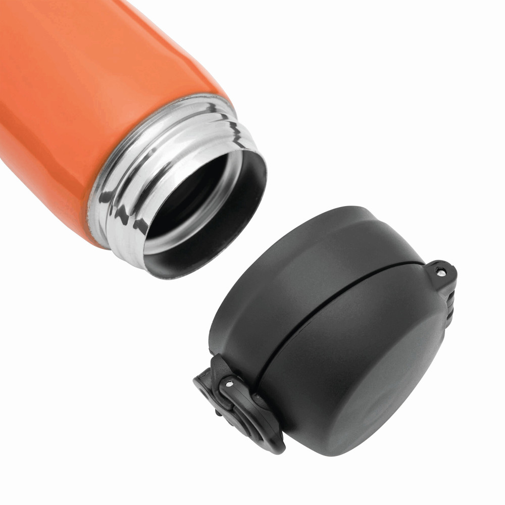 Vakuum-Trinkflasche OOLONG, doppelwandig,: innen und außen aus Edelstahl, Kunststoff-Deckel mit Klappverschluss, Sicherheitsverriegelung, integrierter Trinköffnung, Füllmenge ca. 400 ml, halt ca. 6 Stunden warm und bis zu 12 Stunden kalt, in Box