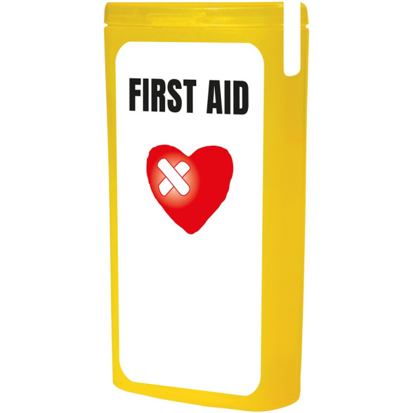 Ideales Erste-Hilfe Set um es bei sich zu tragen. Das Set kann leicht in der Tasche verstaut werden. Mit diesem Set sind Sie gut vorbereitet bei kleinen Unfällen. Inhalt: 5 wasserfeste Pflaster, 2 hautreinigende Tupfer. Alle im Set enthaltenen Erste-Hilfe- und Pflegeprodukte erfüllen alle geltenden EU-Vorschriften. Preis inkl. vollfarbigem Druck.