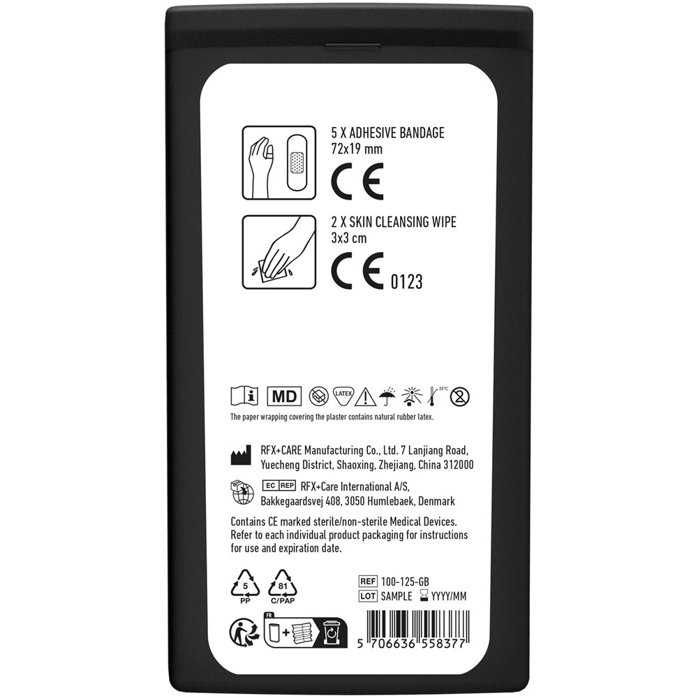 Ideales Erste-Hilfe Set um es bei sich zu tragen. Das Set kann leicht in der Tasche verstaut werden. Mit diesem Set sind Sie gut vorbereitet bei kleinen Unfällen. Inhalt: 5 wasserfeste Pflaster, 2 hautreinigende Tupfer. Alle im Set enthaltenen Erste-Hilfe- und Pflegeprodukte erfüllen alle geltenden EU-Vorschriften. Preis inkl. vollfarbigem Druck.