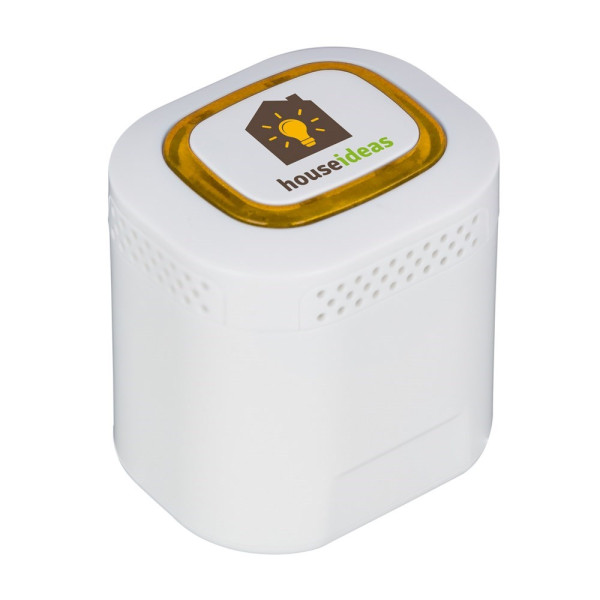 Dieser kleine und klangvolle Bluetooth®-Lautsprecher mit Bluetooth®-Technologie 4.1 (ca. 10 m Reichweite) wird komplett über Ihr Smartphone oder das angeschlossene Audiogerät gesteuert und hat eine Spielzeit von bis zu 4 Stunden. Sie können ihn an der integrierten Schlaufe sogar am Schlüsselbund befestigen. Mitgeliefert wird ein 2-in-1 Ladekabel, das auch per 3,5 mm Klinkenstecker als Verbindungsgerät zum Audiogerät dienen kann. Er hat 2 Watt Ausgangsleistung. Der umlaufende Farbring an der Werbefläche wird per LED hinterleuchtet.