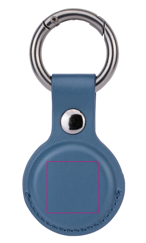 Schlüsselanhänger / Schutzhülle für APPLE AirTag®, mit Karabiner für flexible Befestigung an: Schlüsselbund, Rucksack, Laptoptasche, etc., Druckknopf als Schließe, Kunstleder, matt, dunkelblau/gunmetal