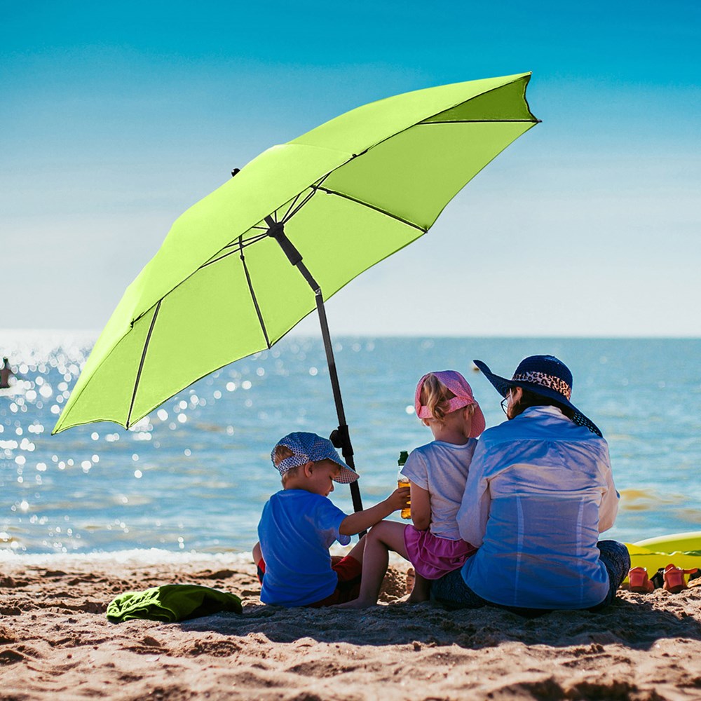 Moderner Sonnenschirm mit Gestell in Titan-Finish und Knickvorrichtung Einfache Handhabung durch Sicherheitsschieber, sehr stabile Fiberglasschienen, zweiteiliger und stufenlos höhenverstellbarer Stock mit Knickvorrichtung zur Neigung des Schirms, Stock in edlem Titan-Finish, Unterstock mit ca. 120 cm Länge und Drehfeststeller zur sicheren Fixierung, komfortables Tragefutteral, hochqualitativer Bezug mit einer Grammatur von ca. 200 g/m² und Lichtschutzfaktor UPF 50+, exklusive Füllständer (Art. 8920 oder Art. 8905) / Erdspieß (Art. 8939)