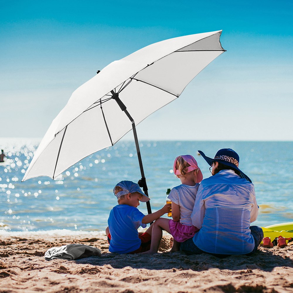 Moderner Sonnenschirm mit Gestell in Titan-Finish und Knickvorrichtung Einfache Handhabung durch Sicherheitsschieber, sehr stabile Fiberglasschienen, zweiteiliger und stufenlos höhenverstellbarer Stock mit Knickvorrichtung zur Neigung des Schirms, Stock in edlem Titan-Finish, Unterstock mit ca. 120 cm Länge und Drehfeststeller zur sicheren Fixierung, komfortables Tragefutteral, hochqualitativer Bezug mit einer Grammatur von ca. 200 g/m² und Lichtschutzfaktor UPF 50+, exklusive Füllständer (Art. 8920 oder Art. 8905) / Erdspieß (Art. 8939)
