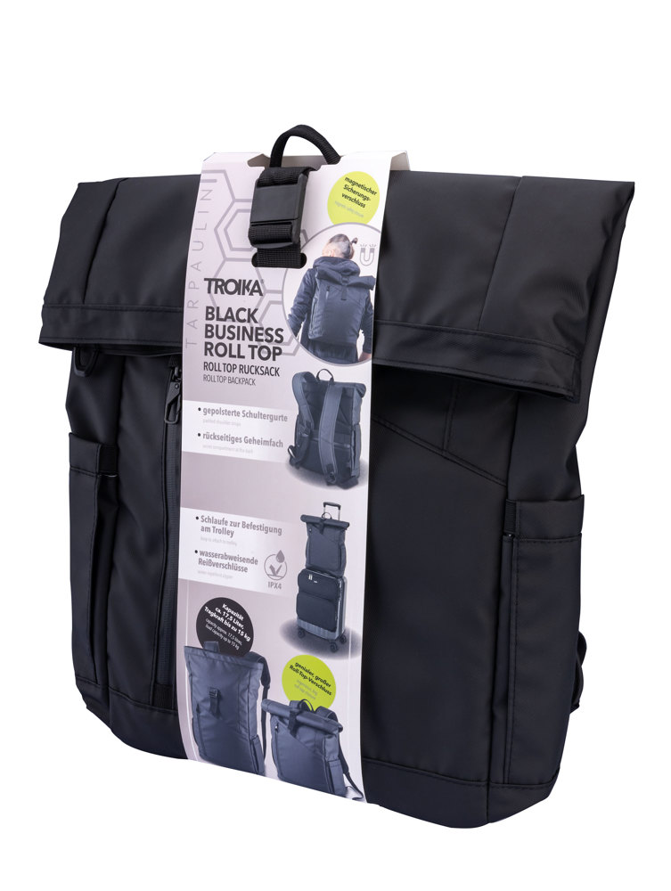 TROIKA Roll Top Rucksack TROIKA BLACK ROLL TOP