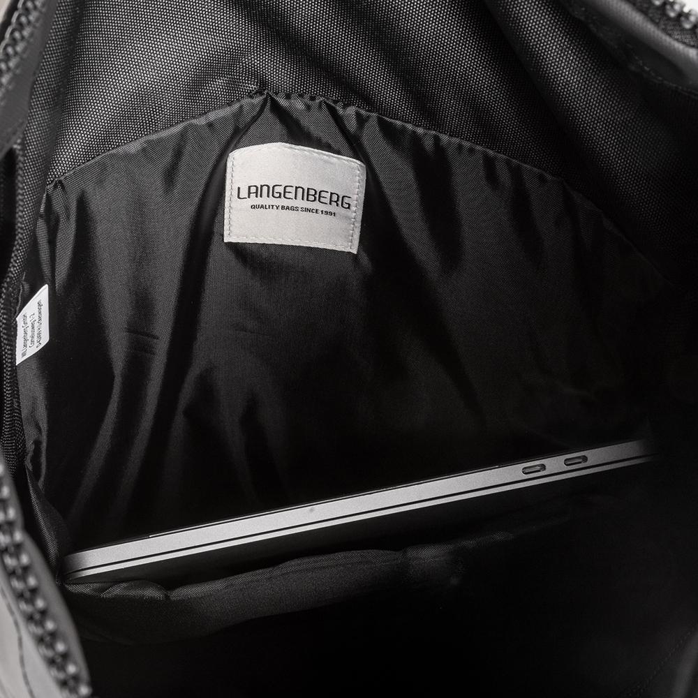 Funktionalität trifft Sicherheit und modernstes Design. Das große Hauptfach ist aus schwarzem Material und reflektiert bei Lichteinstrahlung. Es bietet optimalen Schutz bei schlechten Sichtverhältnissen. Eine Reißverschlussinnentasche bietet zusätzlichen Stauraum, zudem sind im Rückpolster rechts und links Sicherheitsfächer integriert. Ein vielseitiger Rucksack bei Tag und auch bei Nacht.