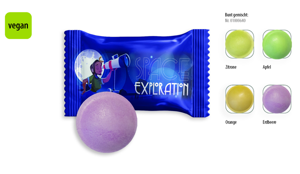 Knackige Oblaten gefüllt mit sprudelndem Brausepulver in fruchtigen Geschmacksrichtungen – der Brause Flummi sorgt für spritzigen Naschspaß und weckt Erinnerungen an die Kindheit. Bunt, vegan und einfach unwiderstehlich. , Geschmack: Erdbeere, Apfel, Zitr