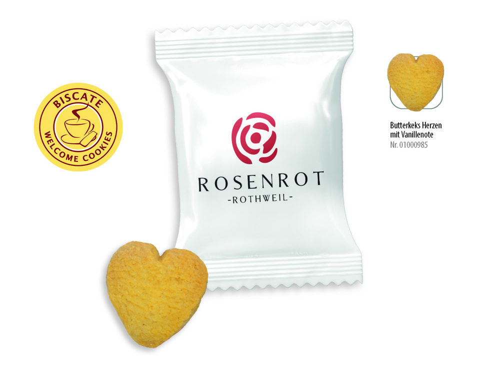 Butterkeks Herzen Flowpack 1 Stück , Inhalt: Butterkeks Herzen