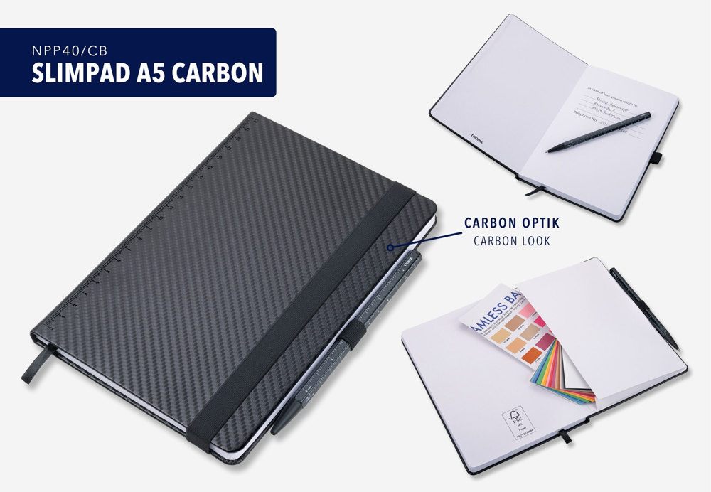 TROIKA Notizblock SLIMPAD A5 CARBON