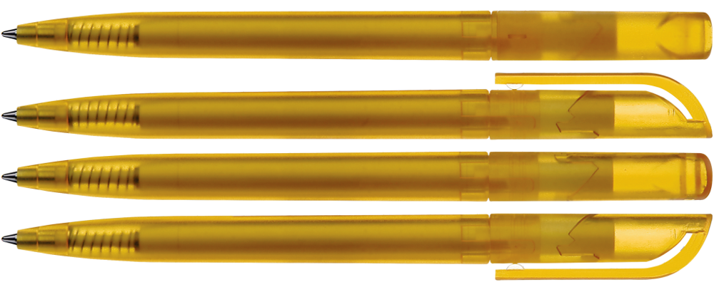 Drehkugelschreiber mit transparent gefrostetem Gehäuse.