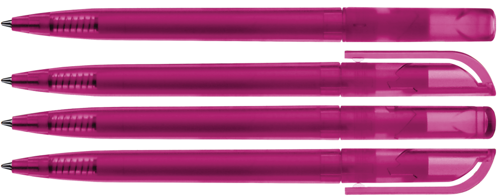 Drehkugelschreiber mit transparent gefrostetem Gehäuse.