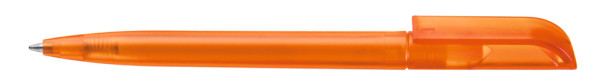 Drehkugelschreiber mit transparent gefrostetem Gehäuse.
