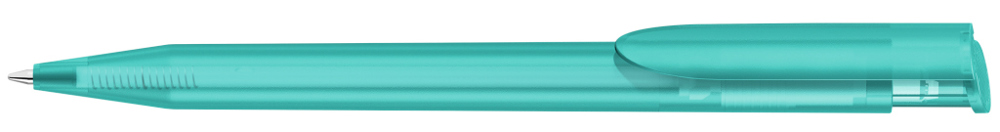 Druckkugelschreiber mit transparent gefrostetem Gehäuse und Clipdrücker. mehr