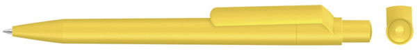 Druckkugelschreiber mit gedeckt mattem Gehäuse, Clip, Drücker und Stopfen.