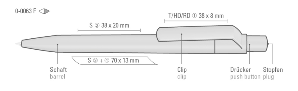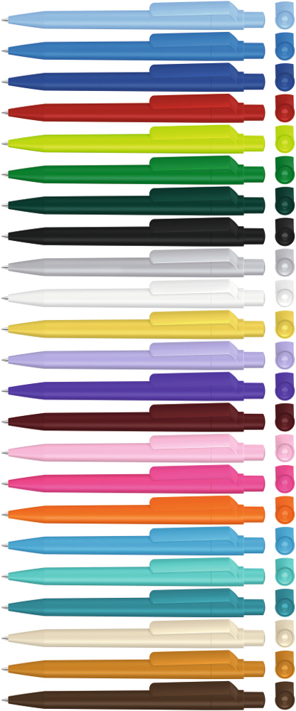 Druckkugelschreiber mit gedeckt mattem Gehäuse, Clip, Drücker und Stopfen. mehr