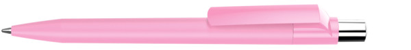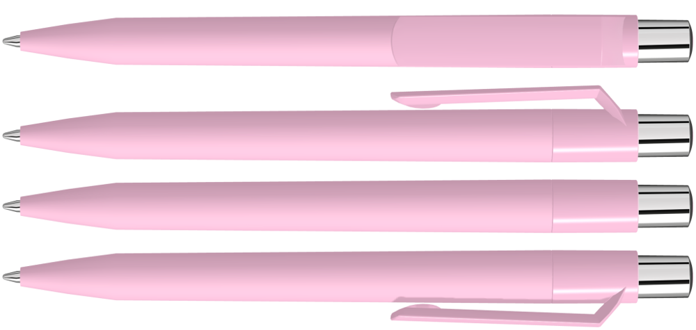 Druckkugelschreiber mit Softtouch-Schaft, gedeckt glänzendem Clip, silber glänzendem Drücker und farbigem Stopfen.