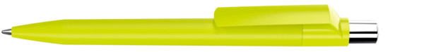 Druckkugelschreiber mit Softtouch-Schaft, gedeckt glänzendem Clip, silber glänzendem Drücker und farbigem Stopfen.