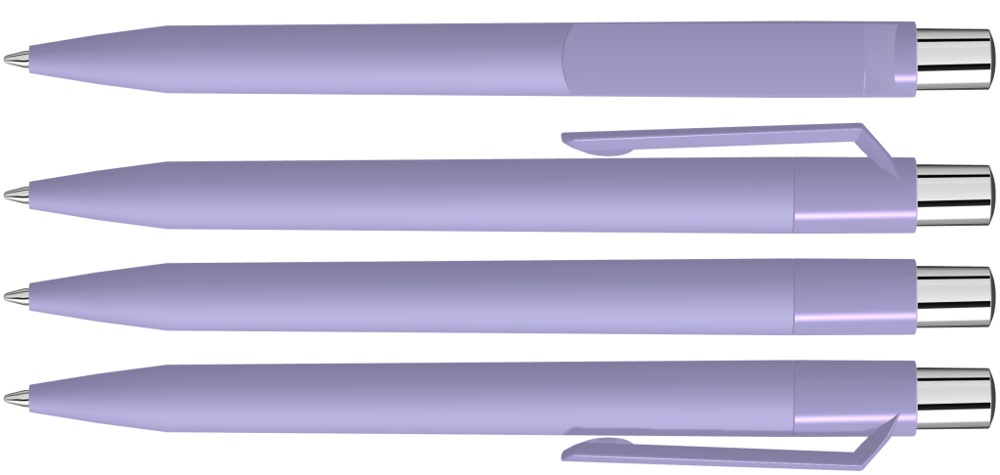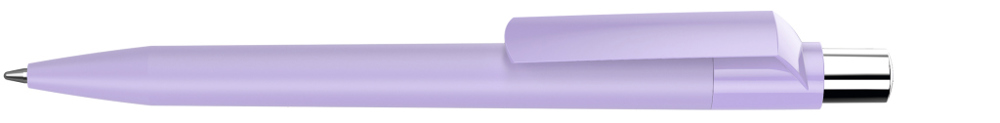 Druckkugelschreiber mit Softtouch-Schaft, gedeckt glänzendem Clip, silber glänzendem Drücker und farbigem Stopfen.