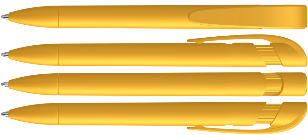 Druckkugelschreiber mit gedeckt mattem Gehäuse, breitem Bogenclipdrücker und Spitze. mehr