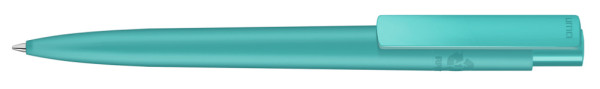 Druckkugelschreiber aus recyceltem PET-Material mit matt gedecktem Gehäuse und Clip.
