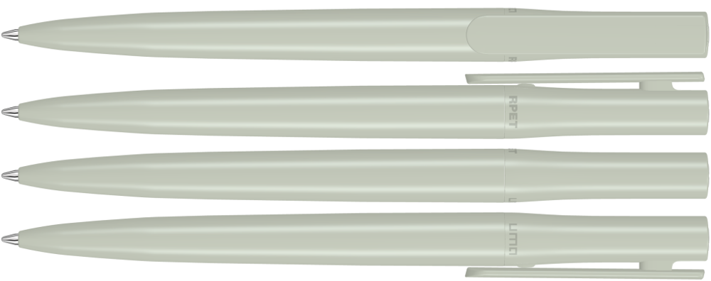 Drehkugelschreiber aus recyceltem PET-Material mit gedeckt glänzendem Gehäuse.