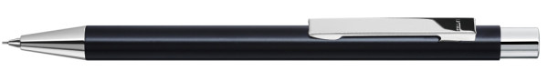 Metall-Druckbleistift (0,7mm) mit mattem Gehäuse. Metallclip, Metallspitze und Drücker silber... mehr