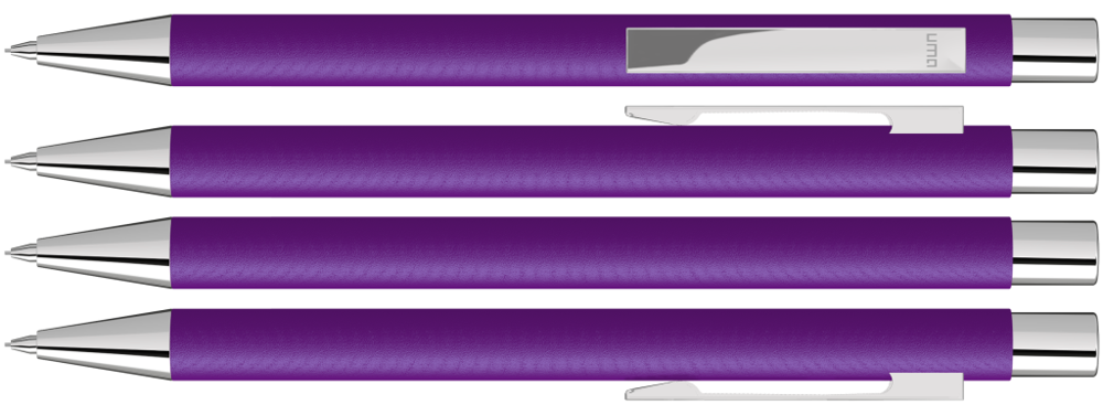 Metall-Druckbleistift (0,7mm) mit mattem Gehäuse. Metallclip, Metallspitze und Drücker silber glänzend. Radiergummi im Drücker.