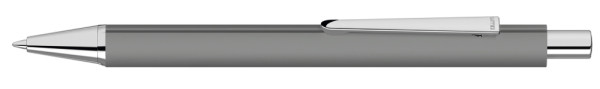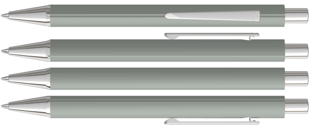 Metall-Druckkugelschreiber mit Softtouch-Dreikantgehäuse, Metallclip, Metallspitze und Drücker in silber glänzend.