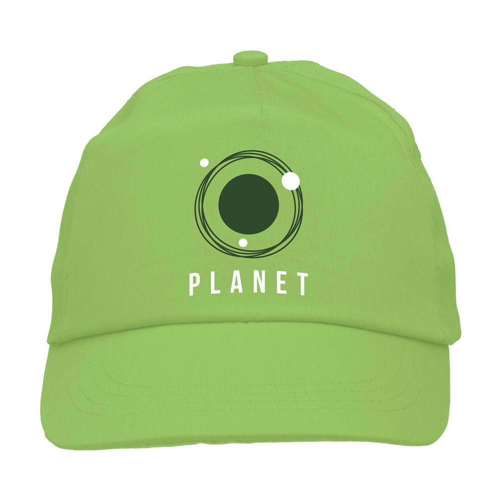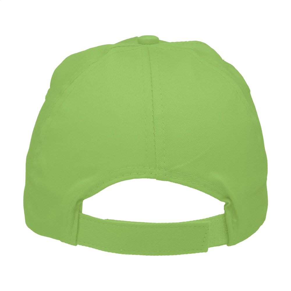 Baseballkappe aus 100% Baumwolle mit vorgeformtem Schirm und verstellbarem Verschluss.