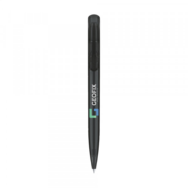 Blauschreibender Kugelschreiber der Marke Senator®. Mit einem transparenten Gehäuse und großzügigem Clip/Druckknopf.