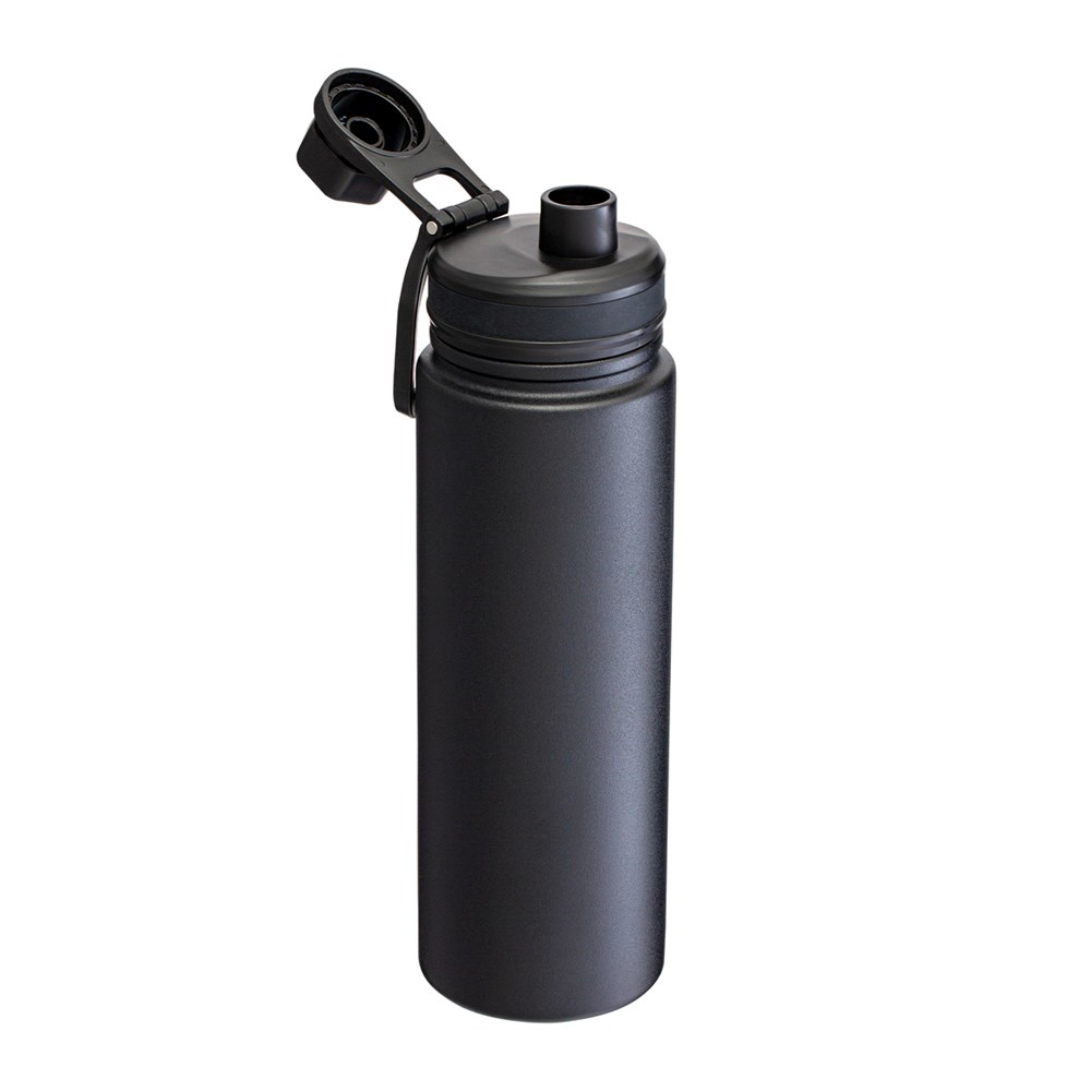 Diese Sportflasche aus recyceltem Edelstahl zeichnet sich durch ansprechendes Design, großes Füllvolumen und gute Isolierleistung aus. Die hochwertige Flasche ist in einer eleganten schwarzen oder weißen Pulverbeschichtung erhältlich. Flüssigkeiten bleiben bis zu 6 Stunden warm und 41 Stunden kalt. Dank der sorgfältigen Verarbeitung mit der Silikon-Dichtung und dem Drehverschluss ist die Trinkflasche auslaufsicher und auch für kohlensäurehaltige Getränke geeignet.