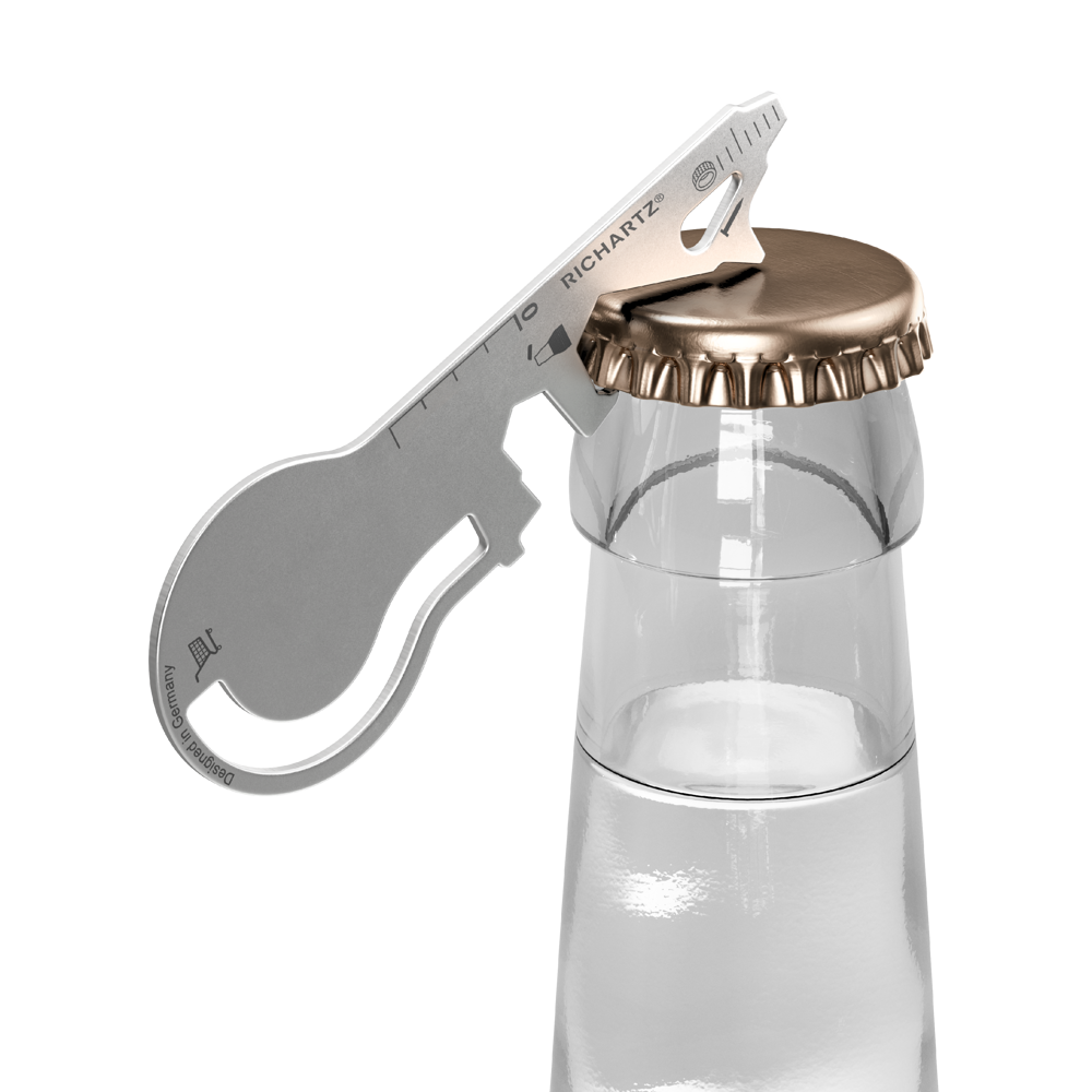 Dein Schlüssel zum entspannteren, leichteren Alltag! Und das darfst Du gleich mehrfach wörtlich nehmen: Unser SUPER KEY shop kommt in Schlüsselform daher, ist ultraflach und handlich. Mit seinen leichtgewichtigen 8 Gramm ist er nahezu unbemerkt überall dabei. Positiv bemerkbar macht er sich dann bei vielen Alltagsherausforderungen - mit Einkaufswagenlöser, Flaschenöffner, Schraubendreher und vielem mehr.
